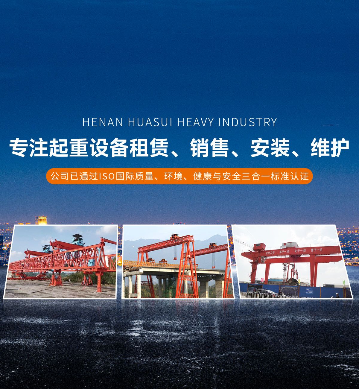河南華隧重工機(jī)械裝備有限公司主要從事通用門式起重機(jī)、橋式起重機(jī)、電動(dòng)單梁起重機(jī),輪胎式起重機(jī)、架橋機(jī)、提梁機(jī)、遠(yuǎn)梁平車、鋼絲繩電動(dòng)萌蘆、卷?yè)P(yáng)機(jī)、起重配件制造、銷售:起重機(jī)械租賃、安裝和維修,起重設(shè)備園收,機(jī)械設(shè)備維修,鋼結(jié)構(gòu)工程承包,橋梁工程及技術(shù)咨淘服務(wù),銷售五金制品、機(jī)電設(shè)備:建設(shè)工程監(jiān)理,建設(shè)工程設(shè)計(jì),各類工程建設(shè)活動(dòng),建筑勞務(wù)分包,建筑物折除作業(yè),施工作業(yè),工程管理服務(wù),土石方工程施工,裝如發(fā)運(yùn)。  公司已通過(guò)IS0國(guó)際質(zhì)量、環(huán)境、健康與安全三合一標(biāo)準(zhǔn)認(rèn)證,特種設(shè)備制造許可證和特種設(shè)備安裝改造維修許可證。擁有完熟的質(zhì)量管理體系。嚴(yán)格的管理制度,強(qiáng)大的生產(chǎn)能力和先進(jìn)的檢測(cè)手段,在保證產(chǎn)品質(zhì)量的同時(shí),也具備了極強(qiáng)的市場(chǎng)競(jìng)爭(zhēng)力。  公司堅(jiān)持科技創(chuàng)新為理念,產(chǎn)品質(zhì)量為核心,注重信譽(yù),建立了減信可靠、快捷、思速。便利周到的售后服務(wù)網(wǎng)絡(luò)。  我們擁有的技術(shù)專家和技術(shù)服務(wù)隊(duì)伍為客戶提供充善的售前技術(shù)支持和全天候的售后服務(wù)體系,讓您無(wú)后顧之憂,享受一站式的超值服務(wù)。  “華隧重工,伴您成功“是華隧重工永遠(yuǎn)的宗指,真被的希望與各界朋友攜手并進(jìn)。共創(chuàng)輝準(zhǔn)!